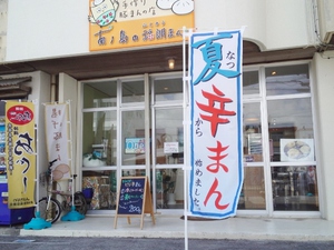 7月から売り出し中の「ピリ辛まん」ののぼりですが・・