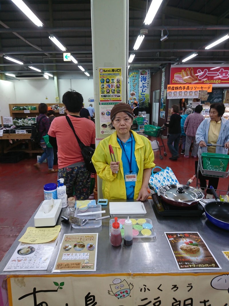 糸満ファーマーズマーケット(うまんちゅ市場)にて、試食中です。