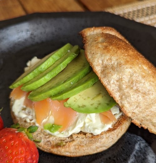 1.全粒粉ベーグルを半分にカット ⇒ 焦げ目がつく程度にトースト