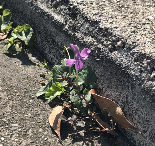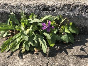 スミレで~す (*’▽’) 歩道の脇に咲いています。