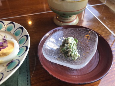 苦菜の苦味を白和えで包み込んでいて、心地よい苦味です。