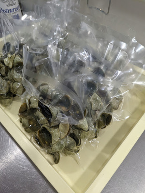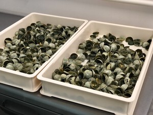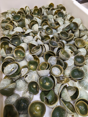 約2時間、ひたすら皮と袋を分離する作業 (気が遠くなりそうでした~)