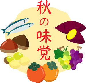 栗、お芋、カボチャ、茄子、ぶどう、柿、梨、秋刀魚、きのこ等々