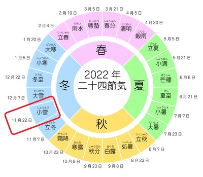 今年の二十四節気の『小雪』は、11月22日~12月6日までを言います