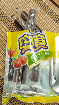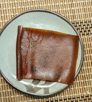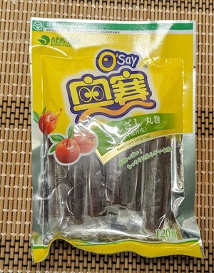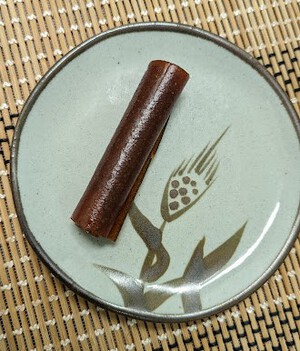 シート状に加工した山査子が、クルクルと巻かれ筒状になっていました。