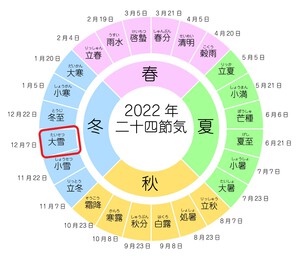 「“大”きな“雪”」と書くことからわかるように「雪がたくさん降る時期」という意味が込められています。
