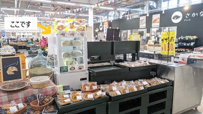 鮮魚販売コーナー寄りのお総菜パンが並んでいる台の中央に設置されています❣