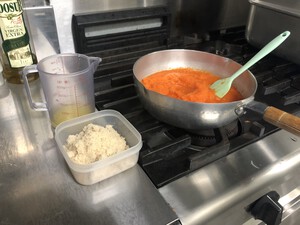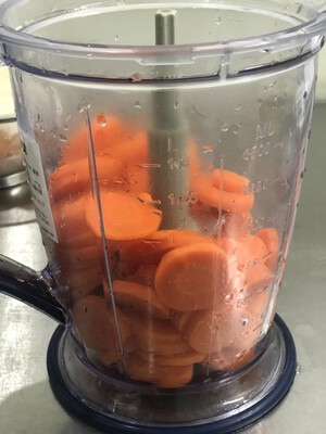③少し水を追加して、ミキサーにかけます。(水は、ミキサーが回る量で、約人参の半分ぐらい入れました。)