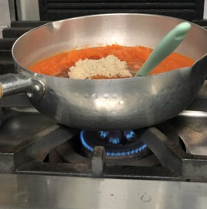 ④お鍋に移し、お砂糖と、シークワーサーを加え弱火で煮込んでいきます。